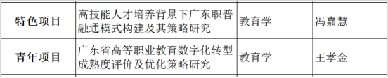 近日,2023年度广东省教育厅科研平台和项目及省教育科学规划课题(高等教育专项)拟立项名单公示,公司6名教师(熊华军、刘海兰、冯帮、陈雪梅、朱姝、骆明丹)所申报项目获立项公示(校内推荐项目全部立项,立项率100%),冯嘉慧老师和王孝金老师申报的科研平台和项目获校内推荐直接立项,属广东技术范大学本年度拟立项公示最多的二级单位。
