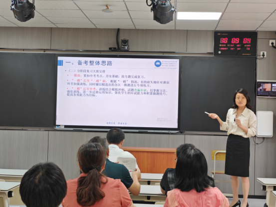 刘老师以《稳中求变,聚焦思维——2025年中考语文备考研讨》为题,围绕“备考思路、学情分析、命题特点”三个层面系统展开。她从“预则立”“阶段复习安排”“资料精选”“团队协同”等方面阐述整体思路,并结合越秀区一模考试,深入剖析古诗文板块答题学情,提出针对性备考建议。在命题分析部分,刘老师以“情境化设问”为例,强调教师应注重思维训练与能力导向,落实“稳中求变”,精准聚焦中考语文核心考点。讲座现场气氛热烈,教师互动积极。在交流环节,刘老师就教师提出的复习重难点及教学困惑,进行了详尽回应与实操指导,分享了丰富的经验与方法。与会教师普遍反映受益匪浅,备考信心与路径更加明晰。