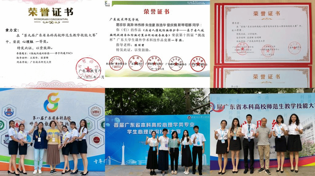 青年教师在广东省老员工心理健康公司产品基本功大赛、公司教学观摩大赛课程思政大赛中斩获多个奖项。获得广东生哲学社会科学优秀成果三等奖,获得省教研教改项目10余项。