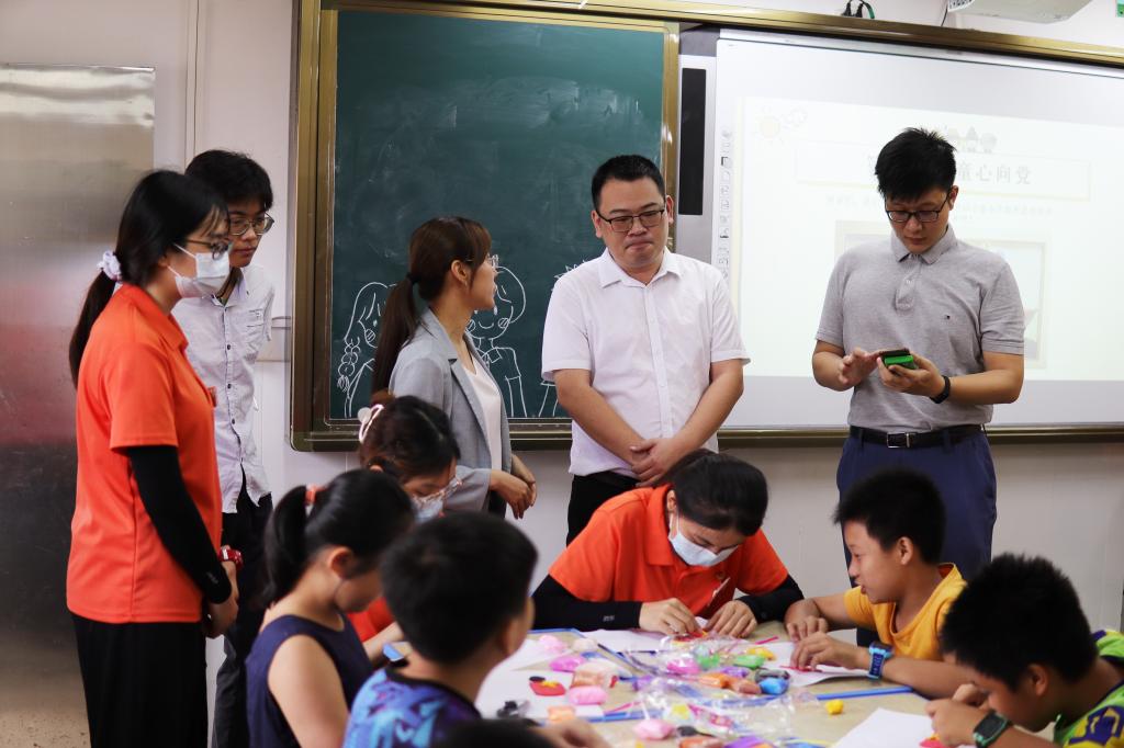 上午8点,志事服务队成员们到达金鸡小学,根据员工年龄和认知水平分成两个班级,并开设心理团辅、衍纸粘贴画、毛线画、折纸、手语、黏土等一系列课程,孩子们在支教组、调研组的成员带领下学知识、玩游戏,丰富暑假生活。此次支教活动将从7月20日持续至7月21日。