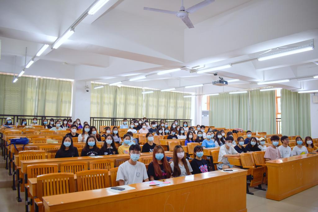在会议开始前,团学工作人员在门口为参会人员测量体温,提醒大家佩戴好口罩,隔空就坐。