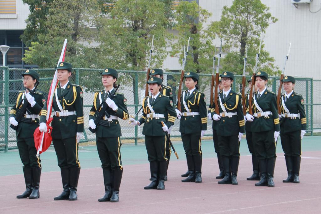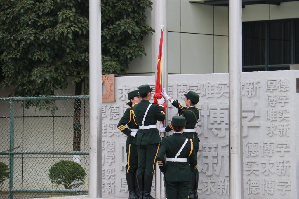 早晨六点四十分,寒风凛冽,天色微明,同学们便早早起来,在升旗台前列队等候。七点整升旗仪式正式开始,英姿飒爽的女子国旗护卫队,迈着整齐划一的步伐,喊着洪亮的口号端庄的向升旗台走去。