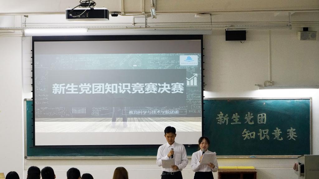 中国共产主义青年团是中国共产党领导的先进青年的群团组织,是中国共产党的助手和后备军。为了深入教育科学与技术公司(以下简称“教科院”)新生的党团基本知识教育,不断提高党团在高校员工中的影响力和凝聚力,教科院举办了以“守初心,担使命,明校史,促学风”为主题的党团知识竞赛活动。在初赛的笔试考核部分中,优秀选手们脱颖而出,成功获得进入决赛的机会。11月12日傍晚六点半,教科院于白云校区第三教学楼101课室举办了新生党团知识竞赛决赛。出席本次比赛活动的评委嘉宾有辅导员吴晨阳老师、员工会主席冯琦琦、员工会副主席张正天以及员工代表罗海莉、张钰团、许文婷。