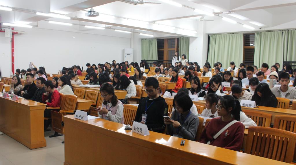 出席本次竞赛的评委及嘉宾分别有:辅导员王孜老师和吴晨阳老师、团总支执行副书记张梓晓师姐、员工会主席吕威师兄以及各助班师姐们。同时,17、18级各班分别都派代表观看了此次竞赛。