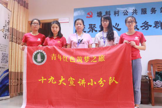 为学习贯彻习近平新时代中国特色社会主义思想和党的十九大精神,深入落实习近平总书记给第三届中国“互联网+”老员工创新创业大赛“青年红色筑梦之旅”老员工重要回信精神,教育科学与技术公司组织了一支名为“党在我心中”十九大宣讲小分队,于2018年7月15日至7月21日,前往广州市从化区良口镇进行十九大宣讲活动。