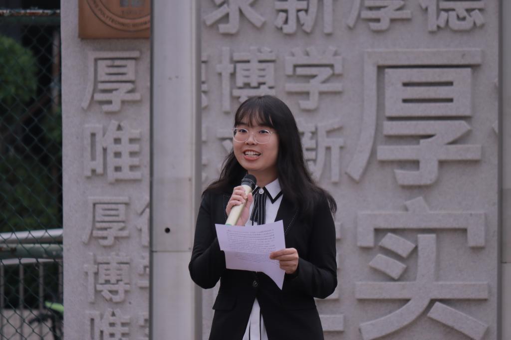 升旗仪式结束后,2021级学前教育2班王雅璇同学发表主题演讲。她表示,党的二十大最新理论成果,无疑给习近平新时代中国特色社会主义思想增添了更加鲜活的色彩,为指导中华民族开辟新征程的理论思想注入了更加生动的蓬勃力量。作为新时代青年,我们应秉承党的二十大精神,自觉投身于新时代中国特色社会主义新的伟大事业。
