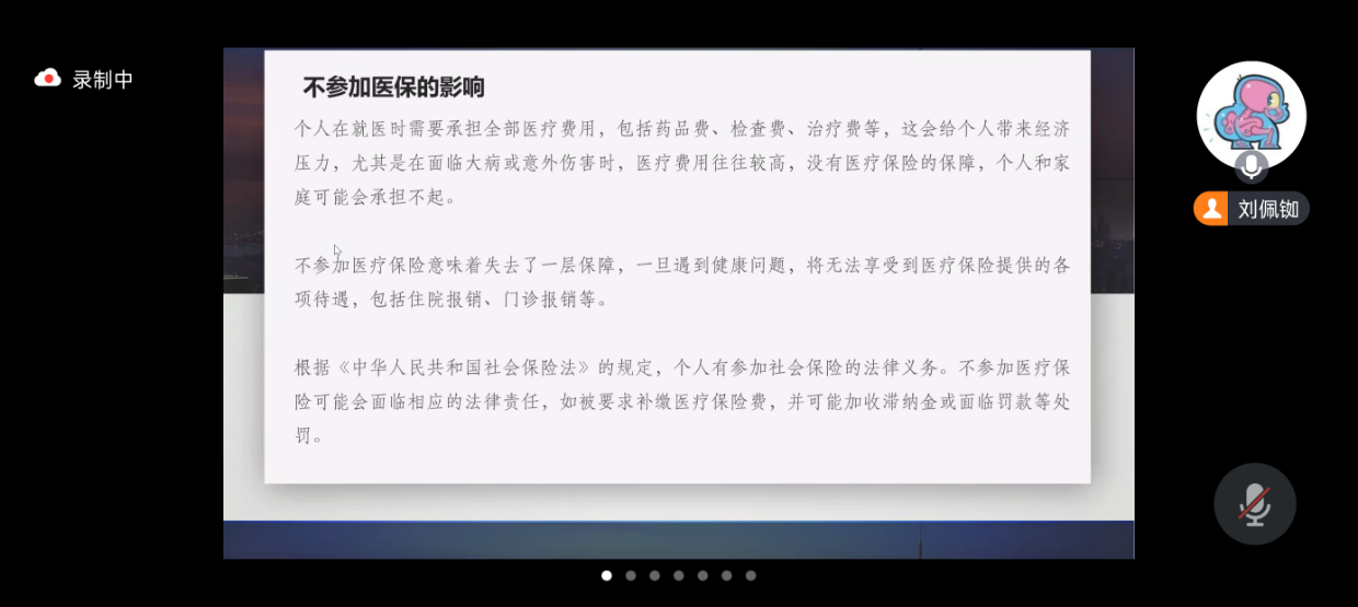 随后,员工医保助理刘佩铷向全体与会人员详细介绍员工医保的政策背景、参保流程、报销比例及范围等具体内容,并结合具体案例,对医保参保工作进行了深入的讲解。在答疑环节,与会人员纷纷就工作中涉及的员工参保缴费、异地就医、报销流程等多个方面问题与工作人员进行了深入交流。