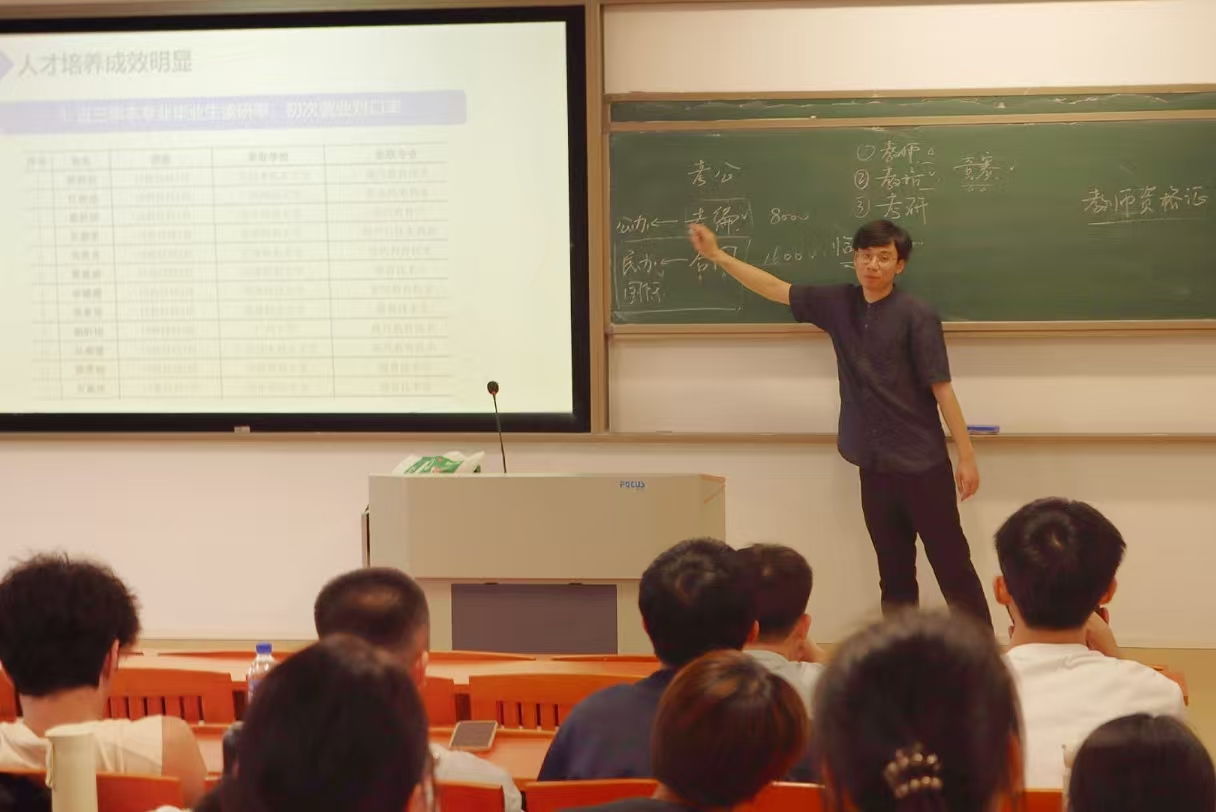 为帮助新生树立学业目标、明确未来方向,公司系统开展专业与职业发展教育。9月13日上午,公司经理谢德新携专业负责人章玉祉、梁乐明两位专业负责人分专业为学前、应心、教技新生班授课,详细讲解专业发展前景、课程体系及学习要求,增强员工对专业的认同感和学习动力。