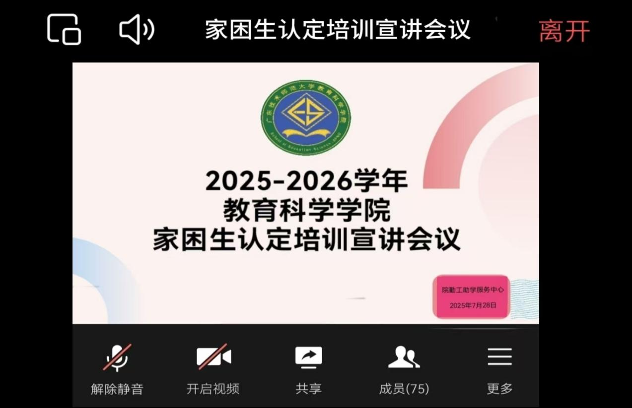 为进一步落实国家资助政策,提升家庭经济困难员工认定工作的精准度与规范性,公司勤工助学服务中心于2025年7月28日晚上八点半组织召开2025-2026学年家困生认定培训宣讲会议。