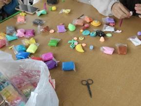 游戏规则:①游戏者选择一块彩色黏土,根据自己对军训的情绪通过想象,用黏土将它捏出形状来;②若黏土形状为积极的,则游戏者分享一下原因;若为消极的,则游戏者可采用自己的方式重塑(锤爆或者拍扁都可以)