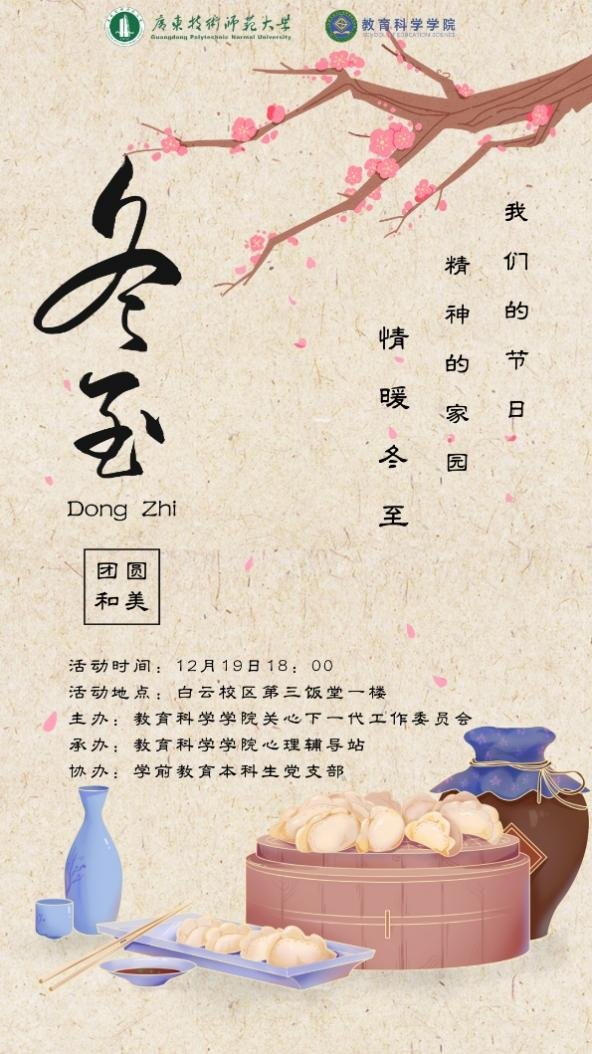 12月19日,由XCSport心理辅导站、院研究生会联合承办的“我们的节日·精神的家园·情暖冬至”主题活动在白云校区第三饭堂顺利举办。全体研究生、心理委员、员工党员欢聚一堂,辅导员吴晨阳老师、梁爽老师、李一鸣老师、宁康老师、袁炜老师和研究生秘书蔡汝定老师参加活动。