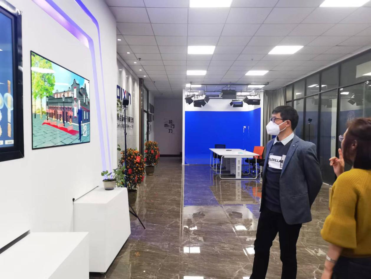 熊华军经理一行首先参观并了解企新电子有限公司元宇宙数字室、混合式实验室相关的各类产品,对企新电子有限公司在中高职人工智能、元宇宙数字室、混合式实验室等方向所积累的成果进行了充分的肯定。