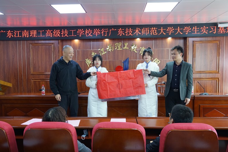 公司副经理谢德新受邀致辞。谢经理指出教育实习是师范生培养的重要环节,说明了双方合作的目的、目标,以及对实习教师的期望和要求,并表达了对广东江南理工高级技工公司的感谢。