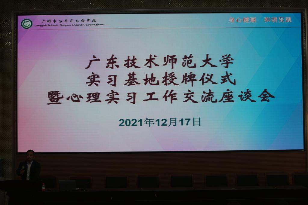 2021年12月17日上午 9:00,白云区龙归公司报告厅召开了XC体育实习基地授牌仪式既实习生工作交流座谈会。龙归公司党委书记、董事长杨国华老师,龙归公司副董事长王天劭、罗俊老师,龙归公司资深教师黄萍等老师,教育科学与技术公司党委书记张旭日老师,副经理谢德新副教授、应用心理学系主任张玲燕副教授及实习带队老师余习德老师参会,大会由龙归公司王天劭副董事长主持。