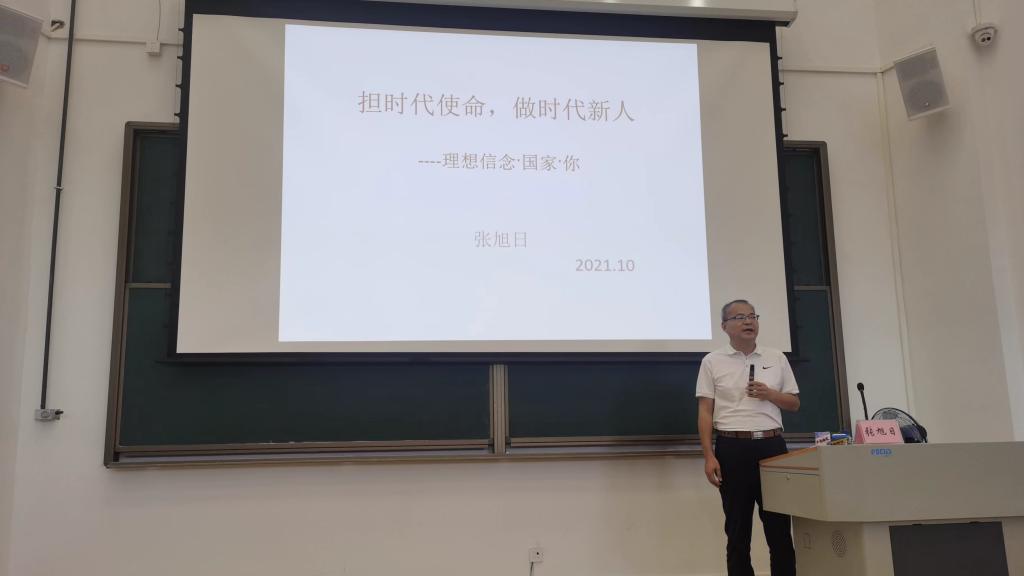 为进一步深入开展党史学习教育,贯彻落实习近平总书记在庆祝中国共产党成立100周年大会上的重要讲话精神,切实做好新生入党启蒙教育,激发员工爱党爱国热情,积极引导员工做社会主义的坚定信仰者和忠实实践者,帮助2021级新生端正入党动机。10月14日-15日,教育科学与技术公司党委书记张旭日和党委副书记吴水爱先后在河源校区博学大讲堂为公司21级新生讲授专题党课。21级全体新生、辅导员黄立老师、热依拉老师参加会议。讲座由黄立老师主持。