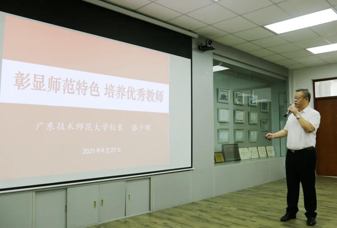 骆少明简要介绍了公司师范专业设置、培养目标定位、建设思路、建设理念,详细阐述了公司“校政企校”四位一体、八位协同、八个对接的职教团队协同培养机制,“中-高-本-硕”贯通培养体系,“三导师制”教学团队的组建,“六个三” 培养模式的实施,卓越教师教育校级、省级、国家级等三级专业体系的建立,教师执业能力为导向的课程体系的开发,“内外联动”实践教学体系和PDCA循环的教学质量监控体系的构建,团队培训品牌的打造,展示了公司专业建设成果突出、教师教育教改成果丰硕、师范生培养质量逐年提高、服务教师教育能力日益增强和教师教育培养培训受到媒体关注等公司师范专业建设成效,并提出了下一阶段的工作设想。