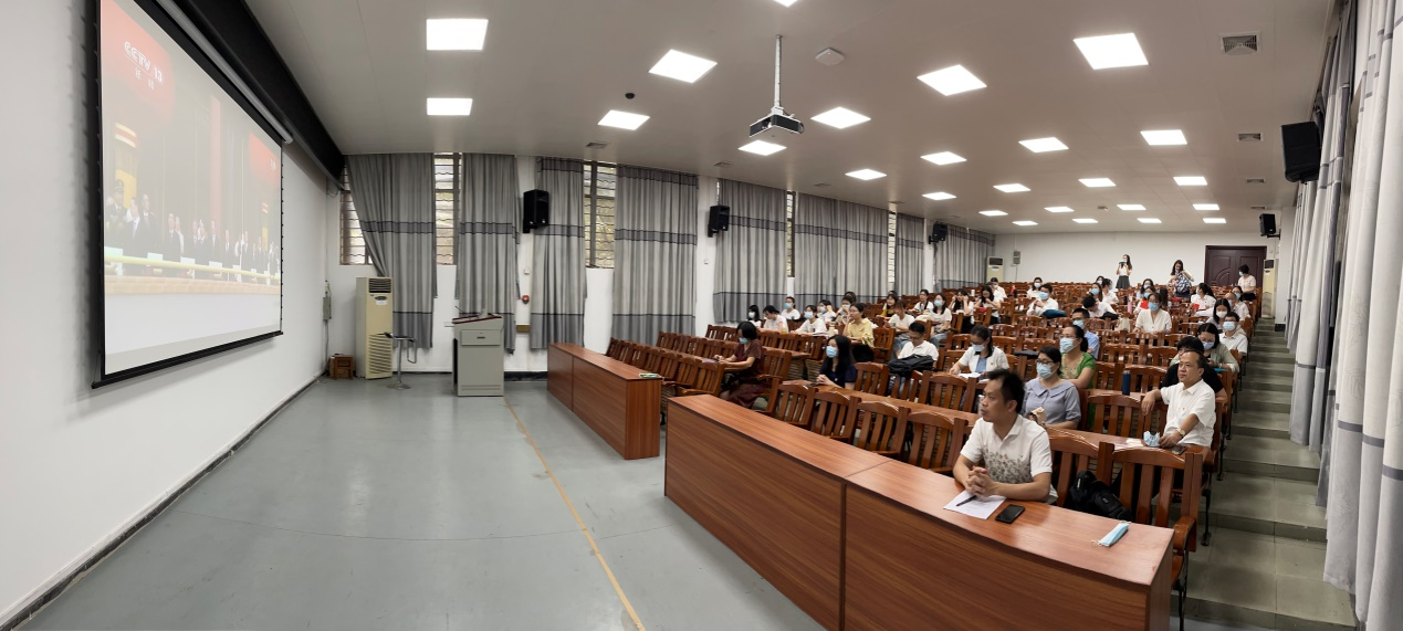 收看庆祝大会过后,全体员工党员进行集体宣誓活动,重温入党誓词的宏亮声音在教学楼内回荡。在专职组织员吴晨阳老师的带领下,大家佩戴党员徽章,举起右手,面向鲜红的党旗庄严宣誓。最后,全体与会人员手持党旗和五星红旗,共同齐唱《没有共产党就没有新中国》,表达对党和祖国的无限热爱。