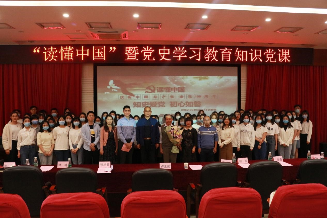 会议第二项议程。年近90岁“五老”卢玉彪同志作“知史爱党,初心如磐”党史教育课,卢老声情并茂地讲述亲身经历和对红色历史的追寻,发扬红色传统、传承红色基因,赓续共产党人精神血脉,高度赞扬了革命伟人周恩来,教育叮嘱同学们要铭记历史,牢记使命,激励同学们通过学习传承红色精神、坚定理想信念,志存高远,脚踏实地,做“有理想、有本领、有担当”的时代新人。