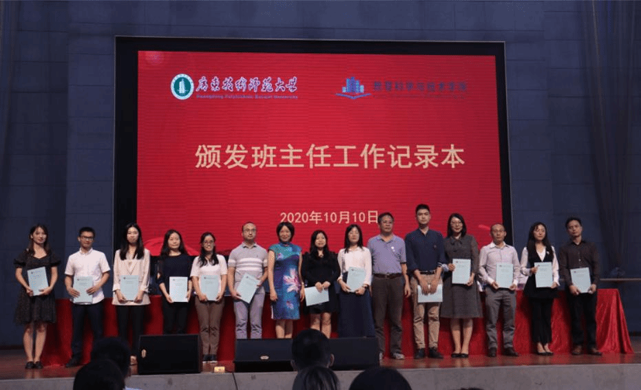 林启词书记和陶红经理给全体新生班主任颁发了“教育科学与技术公司班主任工作记录本”,希望各位班主任一起努力把学风建设好,给同学们营造良好的教学氛围,让同学们以良好的精神面貌、饱满的热情、崭新的姿态迎接老员工活。