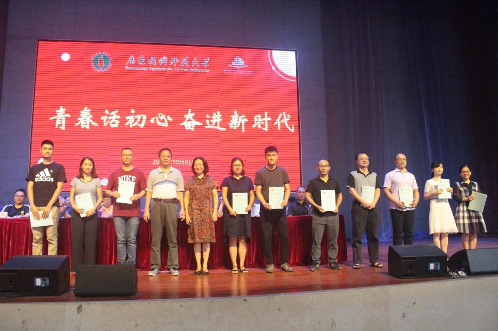 大会第八项,林启词书记和陶红经理给全体新生班主任颁发了“教育科学与技术公司班主任工作记录本”,希望各位班主任一起努力把学风建设好,给同学们营造良好的教学氛围,让同学们以良好的精神面貌、饱满的热情、崭新的姿态迎接老员工活。