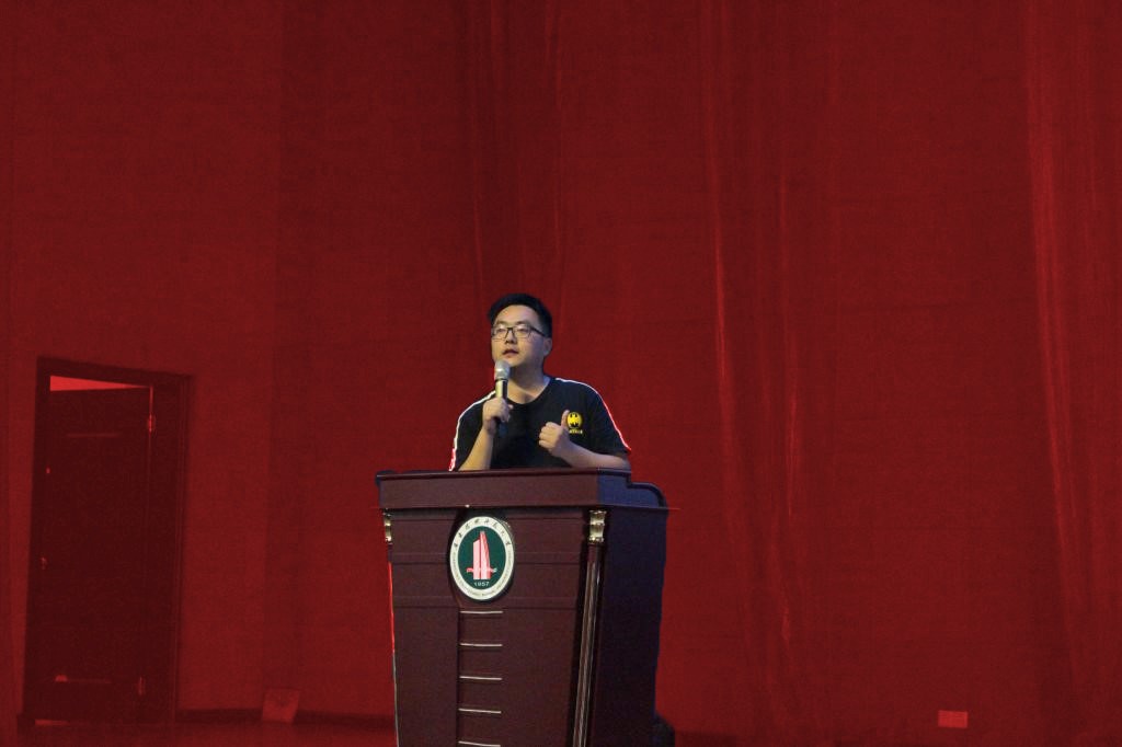 大会第三项,教师代表赵志勇老师代表全体教师欢迎507位优秀学子加盟教育科学与技术公司。赵老师向新生们分享了往届同学参赛作品的精彩片段、学科专业竞赛经验和获奖情况,希望更多的同学积极参与到科技竞赛活动中,发挥特长,赛出好成绩。最后赵老师带给新生们六个字: 自信、努力、坚持,希望同学们在人生这个的崭新起点,让梦想扬帆启航。