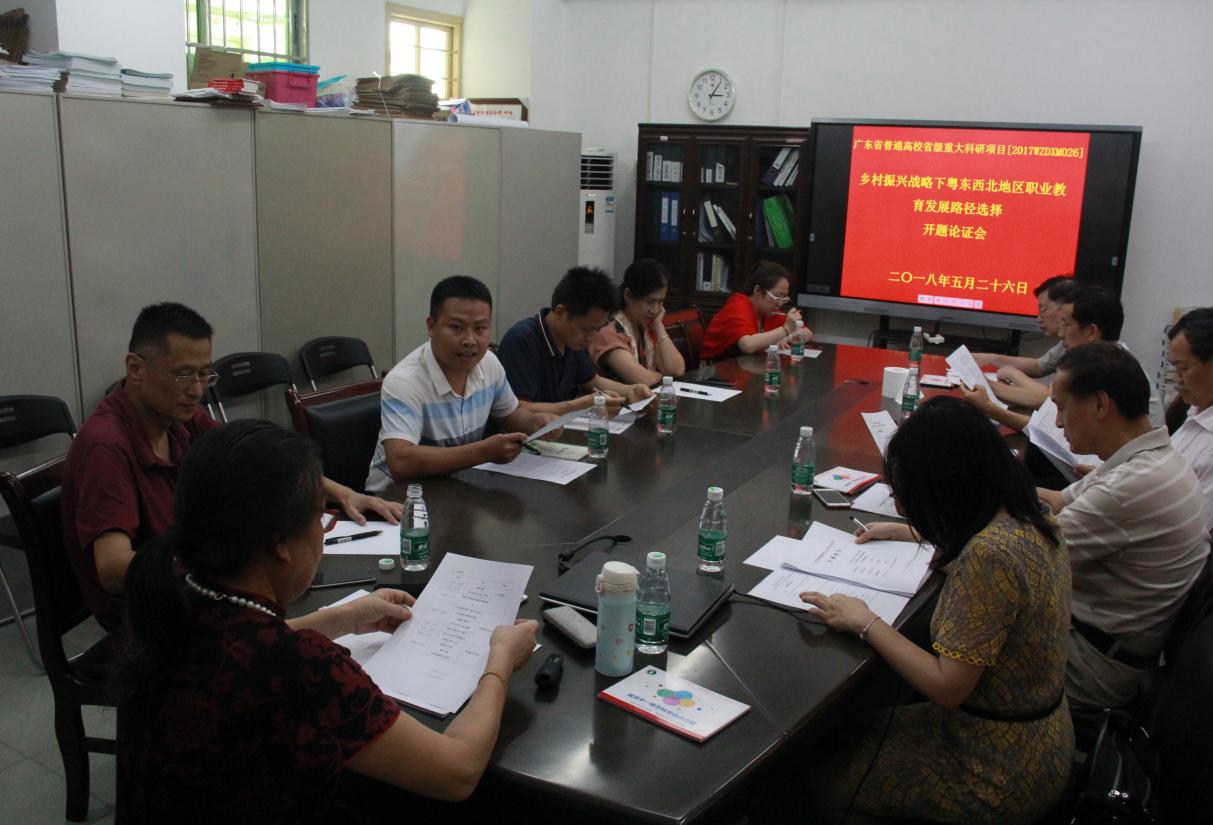 5月26日下午3点,由公司教科院陶红教授申报的广东省教育厅基础研究重大项目《乡村振兴战略下粤东西北地区职业教育发展路径选择》(2017WZDXM026)课题开题报告会,在校本部第一教学楼1413举行。中山大学教育现代化研究中心主任、博导冯增俊教授 ,华南理工大学公共管理公司赵庆年教授,嘉应公司教育公司经理彭旭教授,韶关公司学报编辑部主编王焰安教授以及广东技术师范公司教科院副经理陈丽君教授作为评议专家出席了会议,冯增俊教授担任专家组组长。公司科研处相关老师和课题组成员参加了本次报告会。