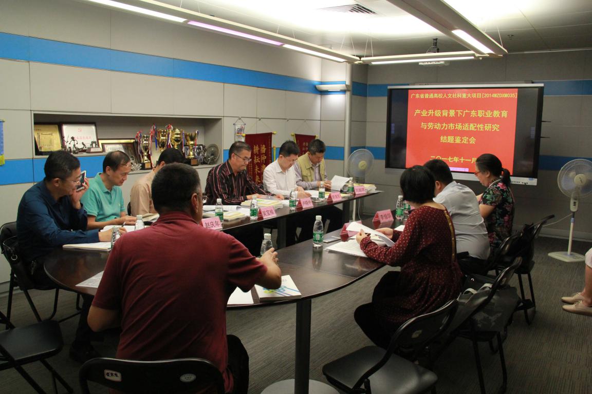 119日,由广东省教育厅组织的广东技术师范公司陶红教授主持的2014年度广东省普通高校省级重大科研项目《产业升级背景下广东职业教育与劳动力市场适配性研究(2014WZDXM035)》结题验收会,在工业中心贵宾室举行。广东省教育厅科研处吴宝榆副处长出席了会议。结题验收专家由华南师范大学教科院经理卢晓中教授、广东省教育研究院副经理李海东教授、华南理工大学高教所赵庆年教授、广东交通职业技术公司副经理刘越琪教授、广州科技贸易职业公司经理蒋新革教授组成,卢晓中教授任专家组组长。公司社科处、课题组主要成员、职业技术教育学在校研究生参加了验收会。