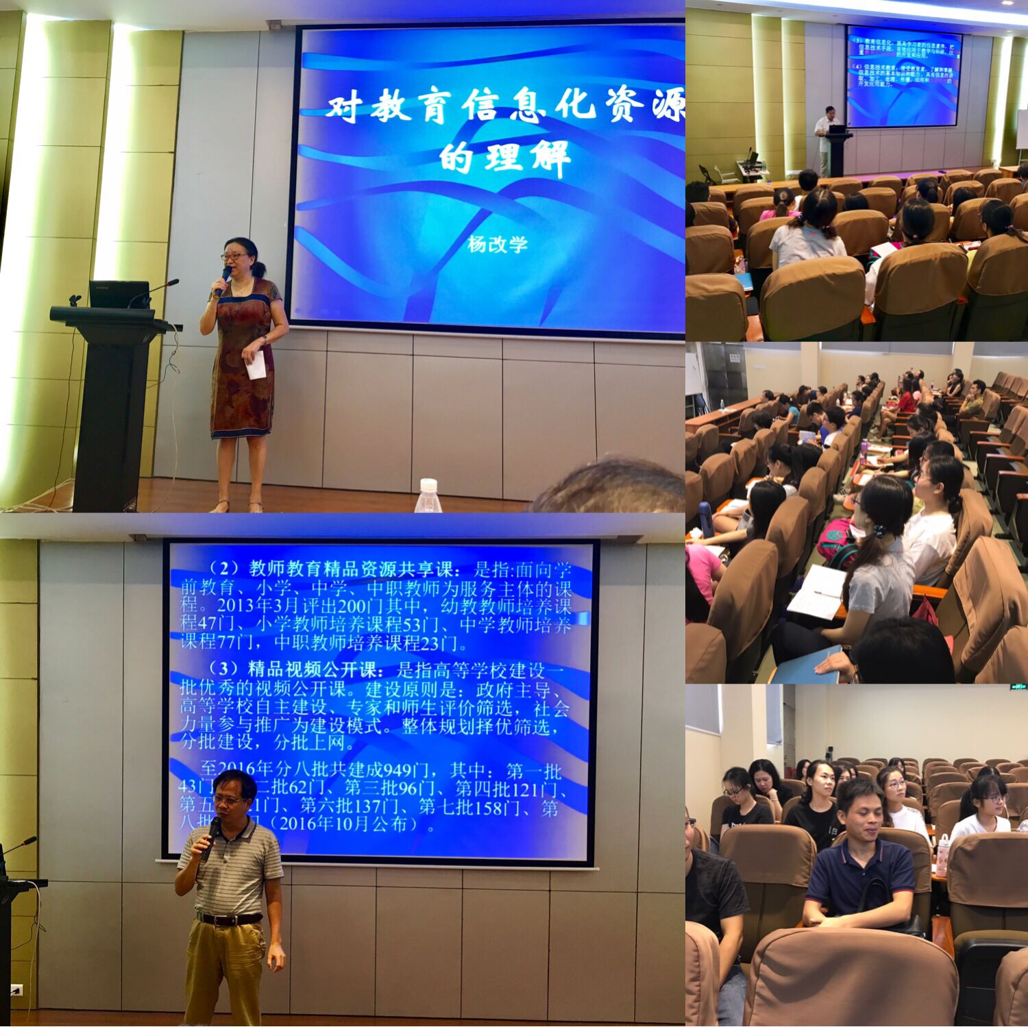并就互联网与“互联网+教育”的联系与区别作了详细介绍。杨教授指出,在“互联网+教育”时代,传统的“授课”模式逐渐消失,个性化学习出现,教育模式更加互联网化。因此,要善于开发数字教育资源,提供各种网络化教育服务,通过尝试MOOC、创客空间、翻转课堂等先进教学手段,将现代化技术手段融入课堂教学,从而提高课堂教学效率。