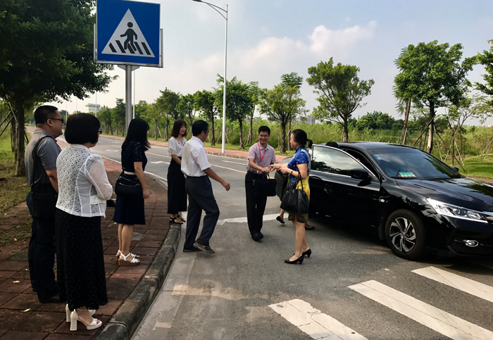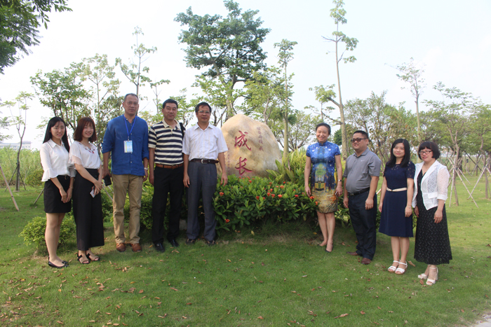 教育科学与技术公司领导班子在白云校区“成长”石前等待评估专家