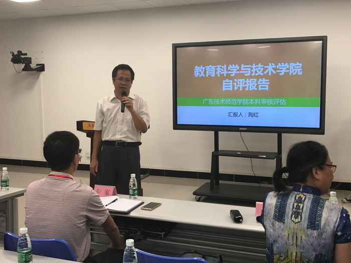 实验创新中心考察后,在第三教学楼102的精品课程录播室,陈伟教授听取了经理陶红教授的自评汇报。教育科学与技术公司党委书记林启词首先代表全体教职工,对陈伟教授的到来表示欢迎,希望陈伟教授以专家的角度,对教育科学与技术公司的工作提出全方位的宝贵意见和建议,通过本科审核评估,使我们的公司、公司有一个更好的发展。