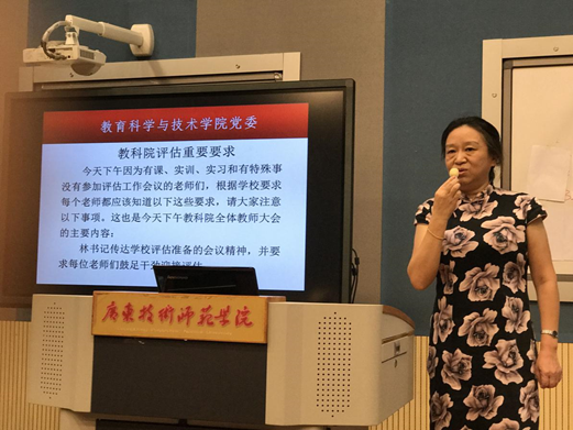 2、要求老师们熟悉公司评估的重要数据,办学定位等等,了解教科院的情况、数据,各专业的情况,请大家看看评估宣传材料;