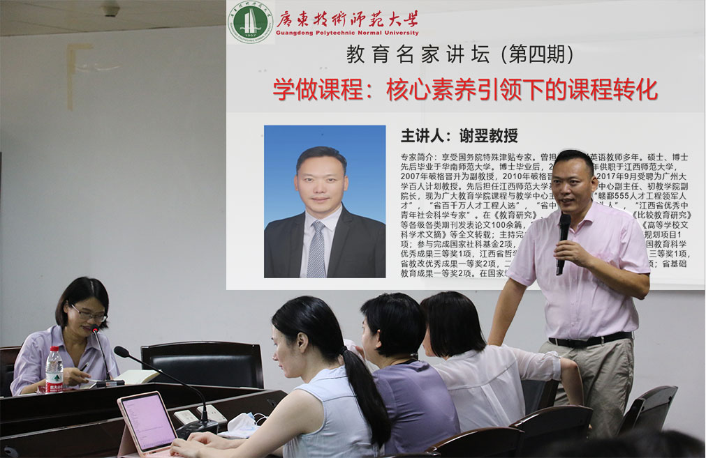 为拓展公司师生教育研究视野,营造良好的学术氛围,2021年9月23日上午,职业教育教师公司“教育名家讲坛”特邀广州大学谢翌教授在东校区工业中心605会议室做了题为“学做课程:核心素养引领下的课程转化”的学术讲座。讲座由职业教育教师公司副经理刘海兰教授主持,部分教师及全体研究生到场聆听。