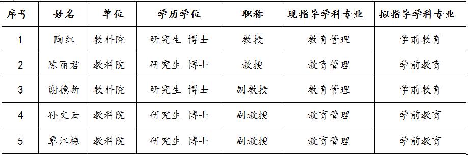 根据公司2020年将新增教育硕士(学前教育)方向招生的实际,经个人申请、公司审核和公司学位评定分委员会审议表决,现将公司2019年拟调整指导学科专业导师名单公示如下: