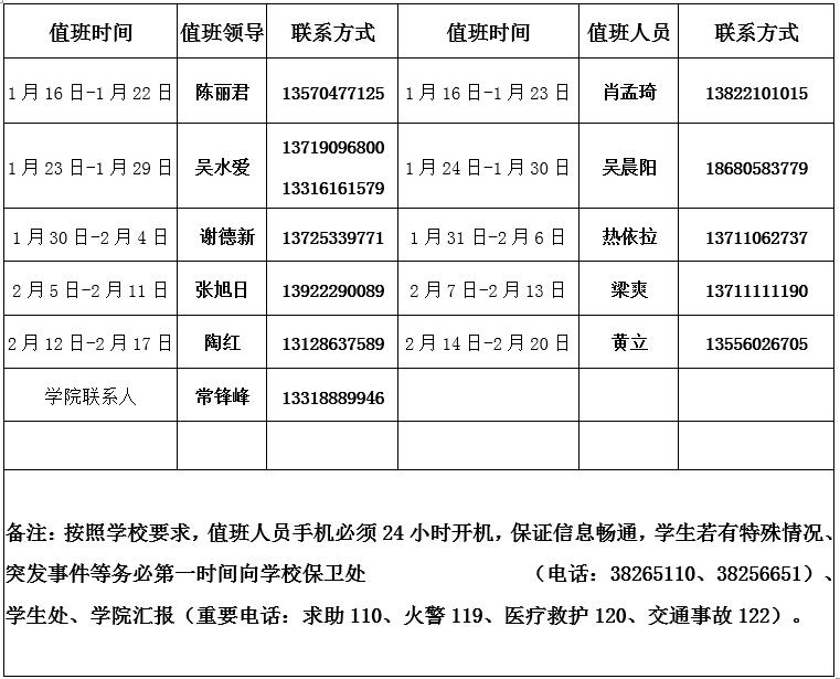 (一)、教师、员工放假时间为1月16日至2月17日,2月18日(星期五)回校报到(注册),2月21日(星期一)开始上课。如公司依据疫情形势发展和相关管理部门要求,调整寒假安排,届时公司会另行通知。
