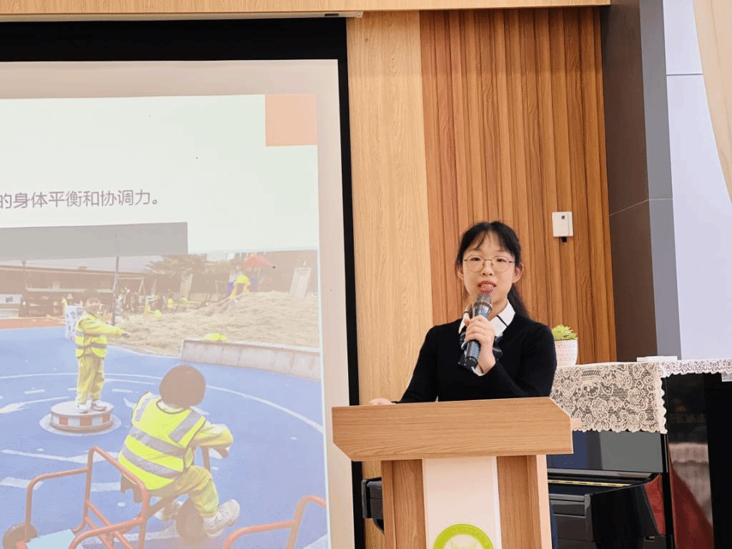结束观摩后,返回小礼堂由园内彭凯兰老师进行了游戏案例分享——中班骑行区《“骑”乐无穷》。