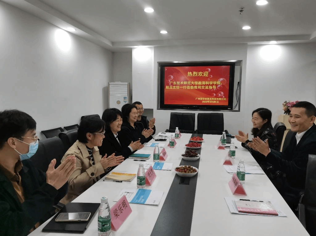 2023年3月29日下午,为推进专业建设更加符合智能时代社会产业结构调整及未来发展趋势,做好2023版本科专业人才培养方案及课程教学大纲全面修订的工作,调查教育科技企业用人要求及教育技术学专业毕业生培养的目标达标情况,推动专业建设和人才培养模式改革,进一步加强校企合作,XCSport教育技术学系一行赴广州市慧学君教育科技有限公司进行调研交流。XCSport教育技术学专业骨干教师赵玉教授、周元春副教授、梁乐明、黄芳明、曹宇星老师参与本次调研活动。广州市慧学君教育科技有限公司林志总经理、张荣丽常务副总、李嘉净教研中心主任等公司骨干与公司一行参与座谈交流。