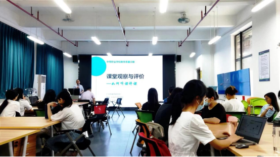 活动第二项议程为陈凯所长围绕目前师生关心的中等职业公司教学质量诊断的问题,以“课堂观察与评价”为题深入浅出的进行了分享。应国家对职业教育提出的高质量发展的要求,陈凯所长搭建了课堂的观察与评价的构架,以听课评课为切入点深入分析了课堂观摩、评价、交流与总结等是如何促进教师个人教学水平的提高的。陈凯所长从自身经验出发,带领同学们了解职业教育高水平发展的需求,并对员工们提出了未来成为职教教师、致力发展职业教育的殷切希望。