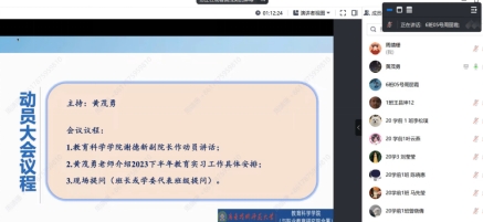 2023年7月3日星期一下午,学前教育系举行2020级师范生教育实习动员大会。公司副经理谢德新、系主任黄茂勇、专业负责人徐韵莹、学前教育系全体专任教师及2020级全体员工参加了会议。