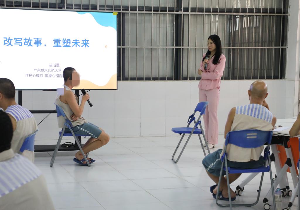 8月初,根据教科院工作部署,应用心理系崔诣晨副教授赴广东省某监狱,为服刑人员开展主题教育和团体分类矫治。8月2日上午,崔老师为全体服刑人员带来了题为《强者选择接纳,智者选择忘我——活在当下的我们该如何面向未来》的讲座,帮助他们认识自我,排解焦虑、抑郁等情绪,重塑健康人格。通过现场直播,场内400多名服刑人员、场外近4000名服刑人员聆听了本次讲座。