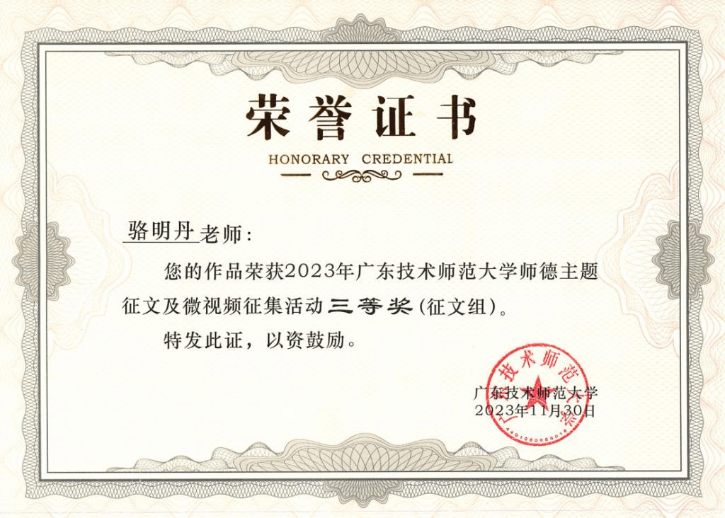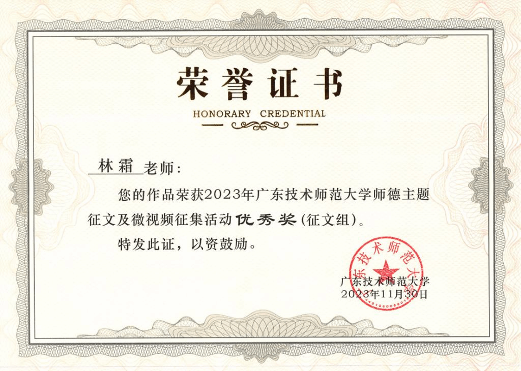 近日,公司公布了2023年围绕“躬耕教坛 强国有我”师德主题征文及微视频征集活动评选结果,XCSport取得可喜成绩。全校29个二级单位的投稿作品88件(征文71篇、微视频17个),XCSport报送的《心之所向,行之所往》(作者:骆明丹老师)荣获征文三等奖,《新时代,新担当》(作者:林霜老师)荣获征文优秀奖。《“双带头人”教师党支部书记工作室建设工作》(作者:陈名祎老师、赵玉教授)荣获微视频优秀奖。