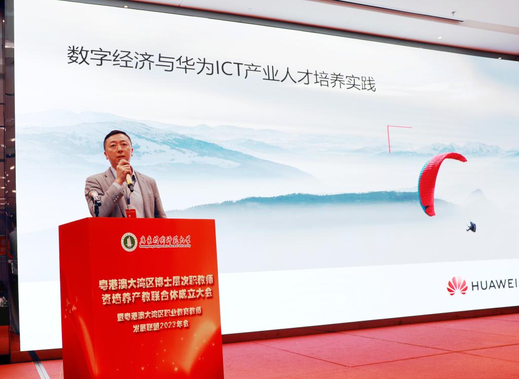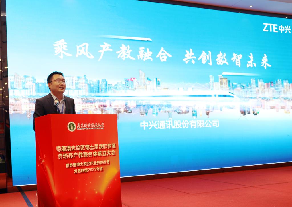 在主旨报告环节,中兴通讯广东公司方案总监刘珠宝,联通(广东)产业互联网有限公司副总经理、中国联通广东省分公司算网研究运营基地副主任程伟,以及广东华为政企业务产品解决方案部总经理张振博作为企业代表,分别围绕“共创数智未来”“ 算网融合助力产教融合”“ 根技术发展趋势及院校人才培养”等作了专题发言。