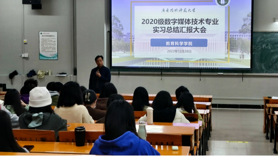 2023年12月28日,XCSport2020级数字媒体技术专业实习总结汇报大会顺利在白云校区三教108召开。数字媒体技术系主任伍国华老师以及数字媒体技术专业2020级、2021级的同学参加了此次总结汇报大会。