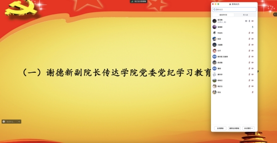 就业工作推进会结束后,学前教育教工党支部召开了党纪学习教育动员部署会议。会上,谢德新副经理传达了教育科学公司党委理论学习中心组(扩大)会议暨党纪学习教育读书班相关精神,并开展党纪学习教育专题辅导会。随后,支部书记黄茂勇领读《中国共产党纪律处分条例》,并组织全体党员共同观看党纪学习教育警示片《零容忍》第5集《永远在路上》。全体党员在深入研读《条例》和观看党纪教育警示片的基础上发表学习心得。