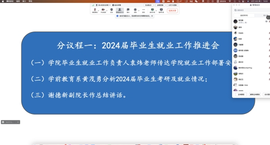 会议首先由袁炜老师整体介绍学前教育系2024年就业情况,并梳理2024年广东省人力资源和社会保障关于实行广东省普通高等公司毕业生就业择业期政策的变化。他指出2024年的高校毕业生就业择业政策和往年的区别,并就老师们的疑问耐心进行解答。会上,熊华军经理指出,招生与就业是公司各项工作的重中之重,毕业生就业工作事关XCSport办学质量和社会声誉,事关员工的发展未来,是对公司贯彻党的教育方针和落实立德树人根本任务成效的重要检验。谢德新副经理强调,全体教师要调动一切可调动的积极因素促进学前教育专业毕业生更加充分更高质量就业,全力推进学前教育专业毕业生就业工作。随后,学前教育系主任黄茂勇总结了分析了学前教育专业毕业生的就业形势,强调了毕业生就业工作的重要性,强调推动毕业生高质量充分就业更是全体专任教师义不容辞的责任。