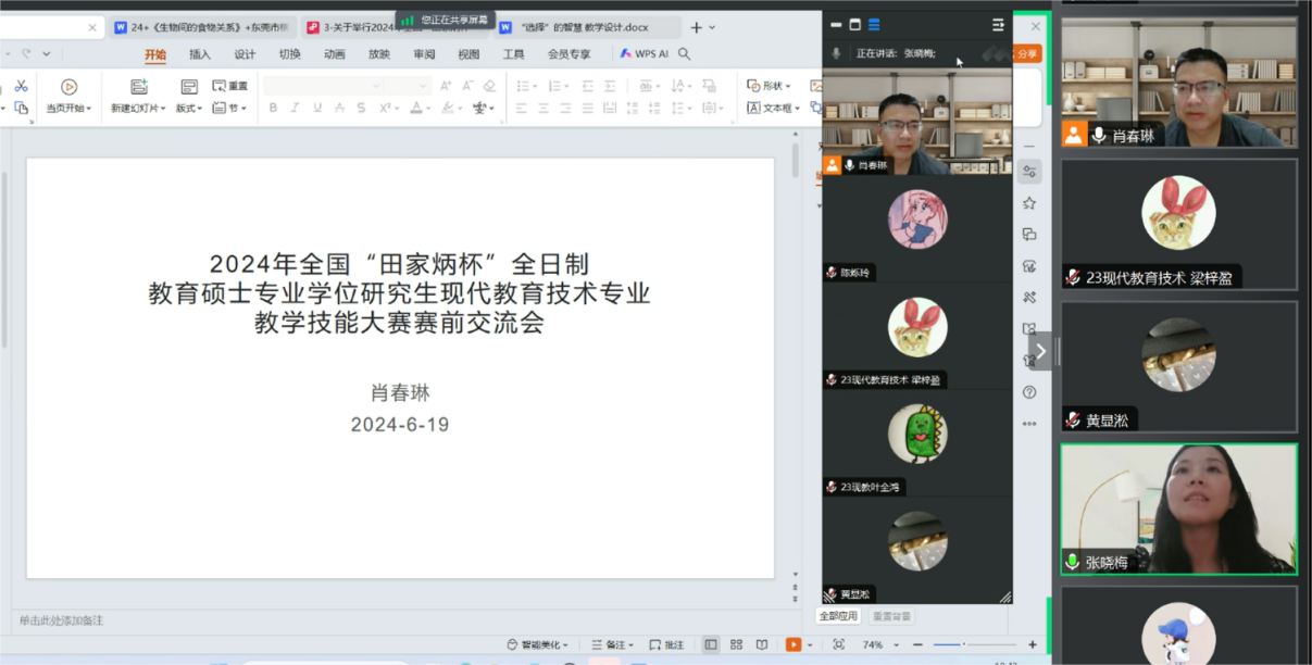 为提高公司教育硕士的教学技能水平,帮助进入“田家炳杯”教学技能大赛国赛的同学提升作品质量,6月19日,现代教育技术方向为5位候选者开展了第一场赛前辅导,现代教育技术方向负责人张晓梅博士与广东省科技教育名师工作室主持人肖春琳老师对参赛选手进行了细致的一对一辅导。
