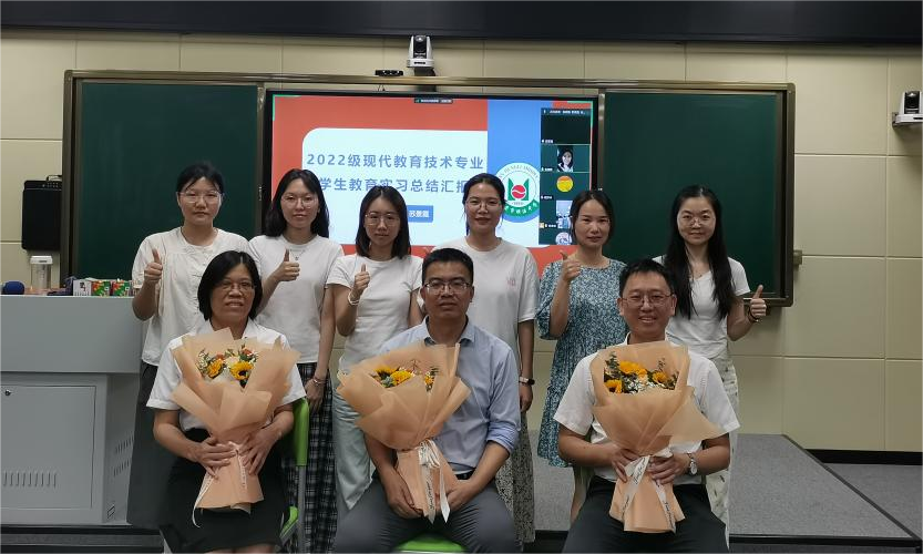 2024年6月24日,22级现代教育技术方向教育硕士在东莞市横沥中学综合楼三楼录播室举行教育实习总结。东莞市横沥中学的三位指导老师、带教老师、六位实习生共同参加了此次总结会。