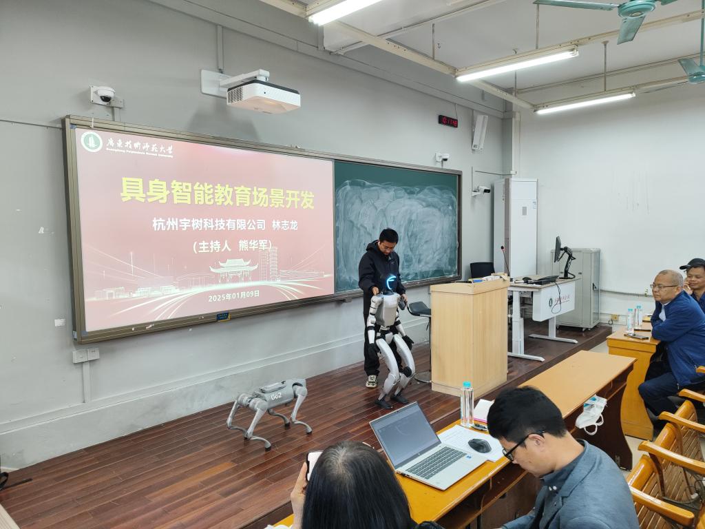 宇树公司展示了其开发并已经上市的人形机器人和四足机器狗两款智能机器人产品,吸引了与会人员的极大兴趣。双方就未来如何将智能机器人引入青少年教育、员工辅导和心理健康教育与咨询等多领域进行了深入探讨交流,希望能在“AI+教育”方向开展进一步合作。