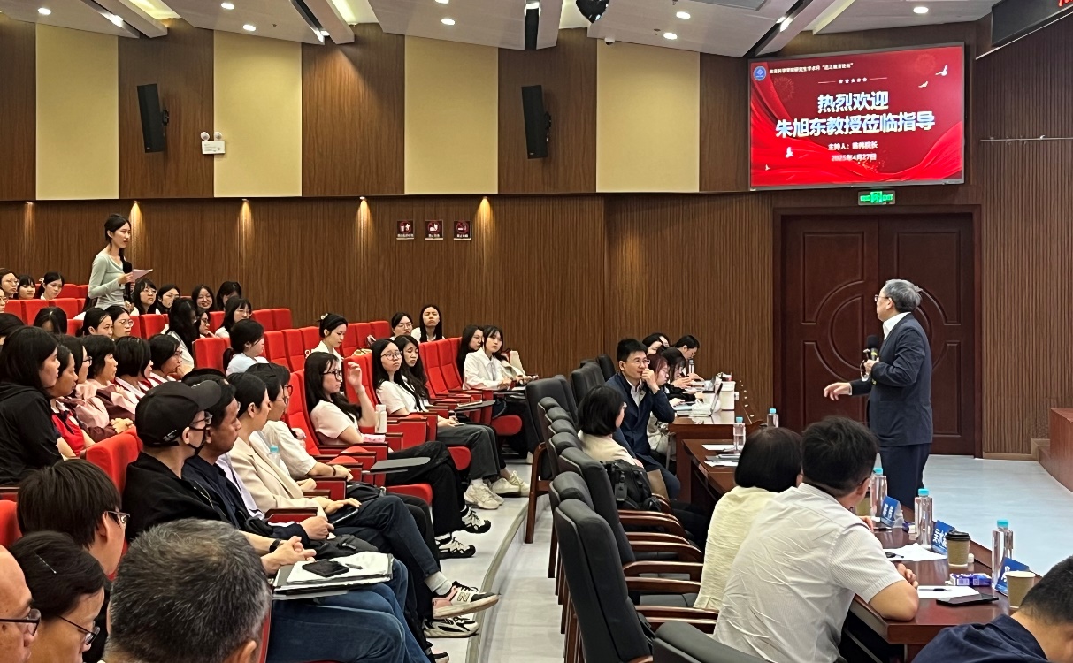 报告中,朱教授围绕“儿童的全面发展”“‘学术学科’和‘科目学科’的二元性”以及“儿童健康发展和儿童学业发展的互促性”三个方面进行深入分析,引导师生从全面发展的视角思考为党育人的问题、从学业学习的视角思考为国育才的问题。