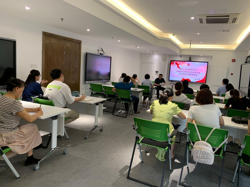 支部书记喻忠恩同志分享了广东省社科联副主席丁晋清关于党史学习教育的报告,传达了广东省教育厅教育工委党委中心组学习的扩大会议的主要内容,并以此话题开展了交流学习会。