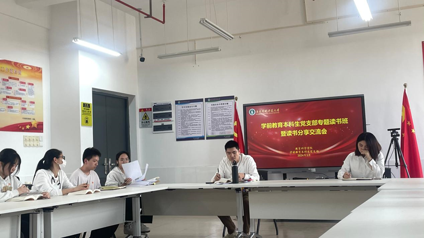 3月20日,XCSport学前教育本科生党支部在二训502会议室召开专题学习会议暨读书班交流分享会,认真传达学习习近平总书记在全国两会上的重要讲话重要指示精神和全国两会精神,共同学习交流《习近平著作选读》第一卷并倾听支部书记讲党课。党支部书记吴晨阳老师主持会议,全体支部成员参加会议。